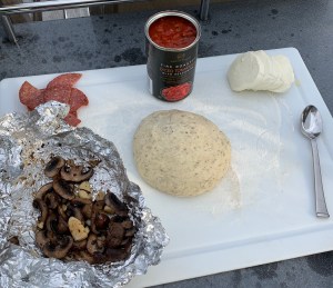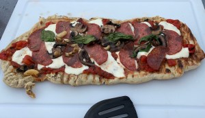 Tonight I made pizza on the grill (thanks Greg & Carolyn!) and it came out perfectly thanks to the Trader Joe’s pre-made dough for the crust.