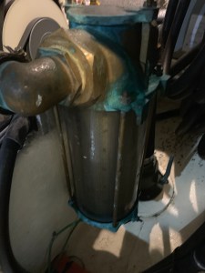 The Captain did some investigating of the tender that led to some cleaning and tidying of the bilge. He discovered that the fuel filter was not properly mounted but we easily found the proper screws and plugs in our newly organized equipment. Problem solved. Check!