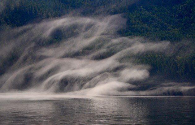 The next morning we woke to sunshine. What a nice change! But I still got a fun photo of some light fog lifting near shore.
