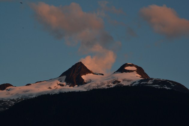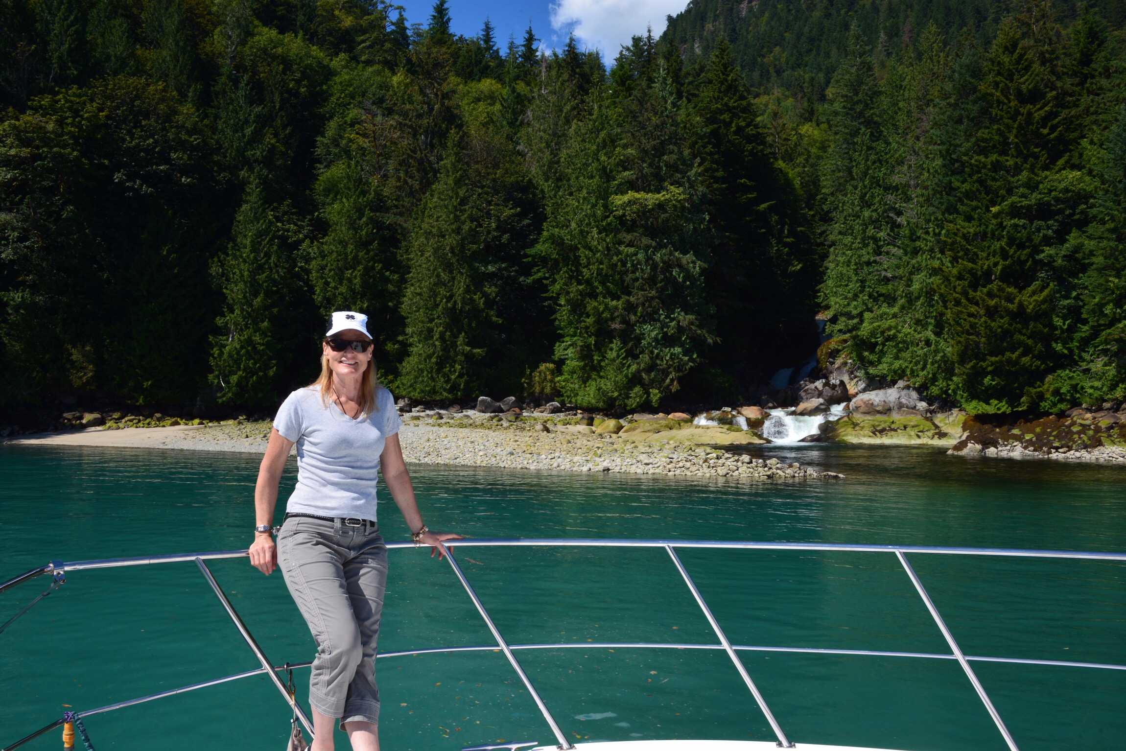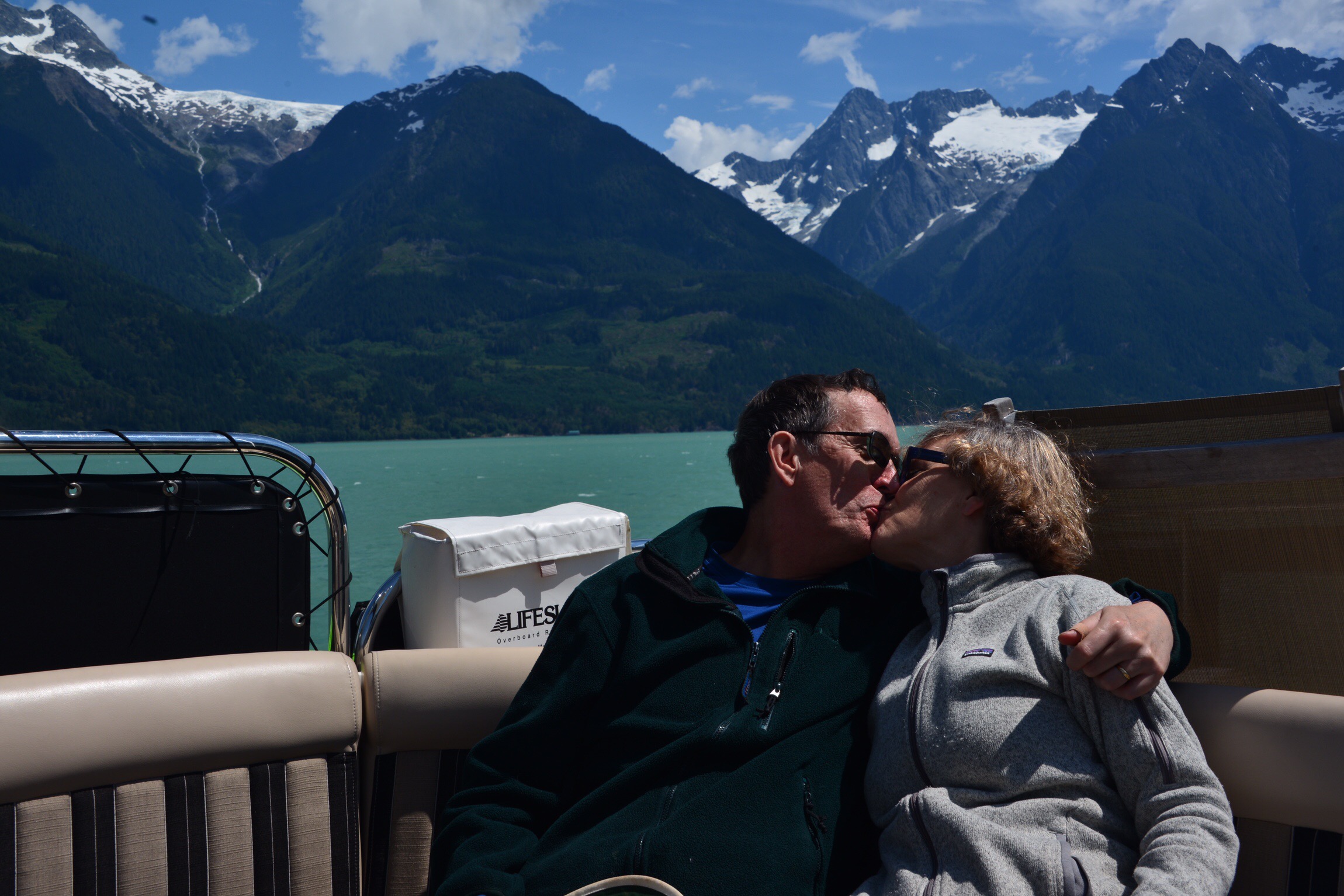 After a quick tour and lunch at Dent we all decided that we should go up Bute Inlet again. It was a perfectly sunny, calm cruise going in and we decided to try anchoring at the very end of the inlet this time because of the calm winds. Although Robert is a kayaking Jedi Master, he has never kayaked Bute Inlet and we knew both he and Sharon would be blown away by the beautiful mountains and glaciers of this Canadian fjord. They were.