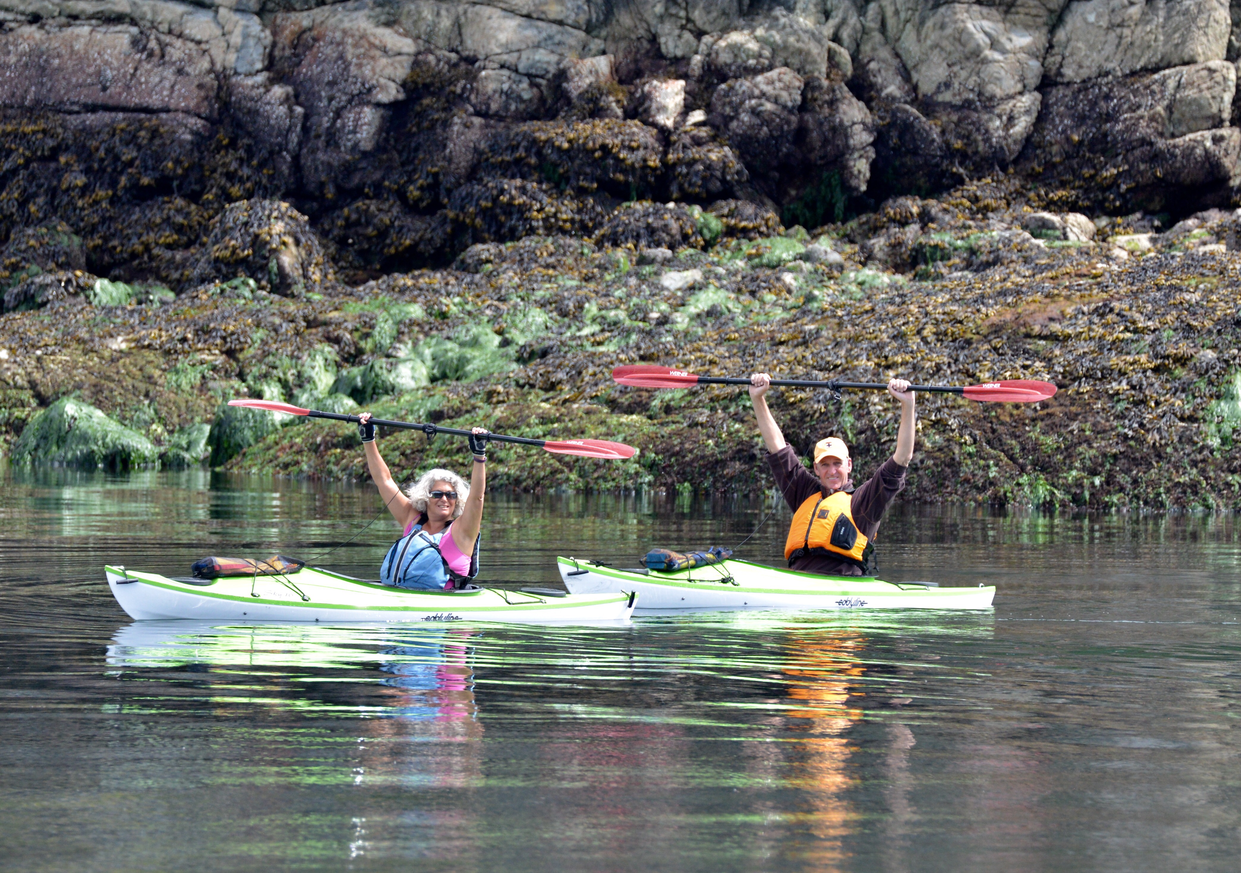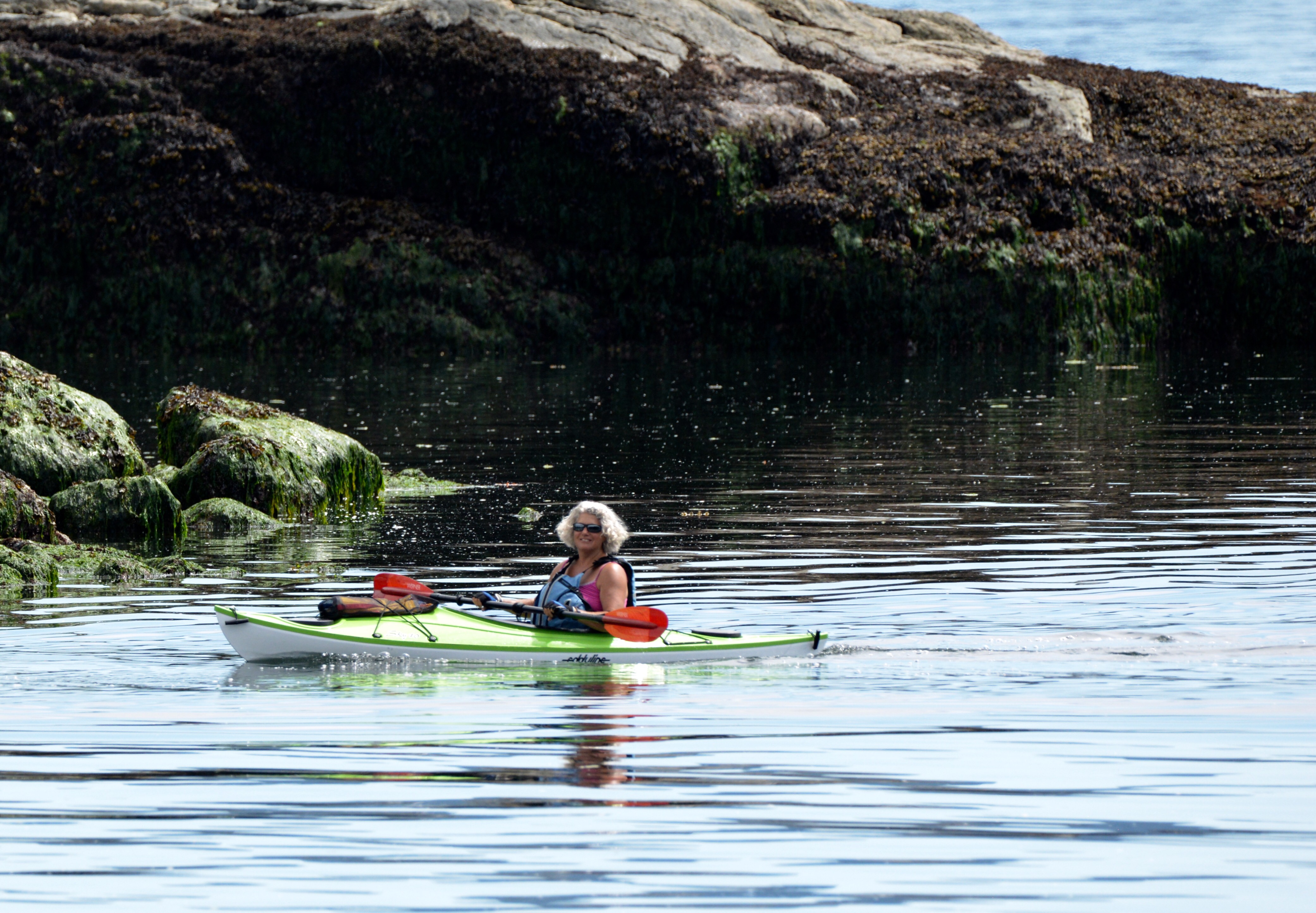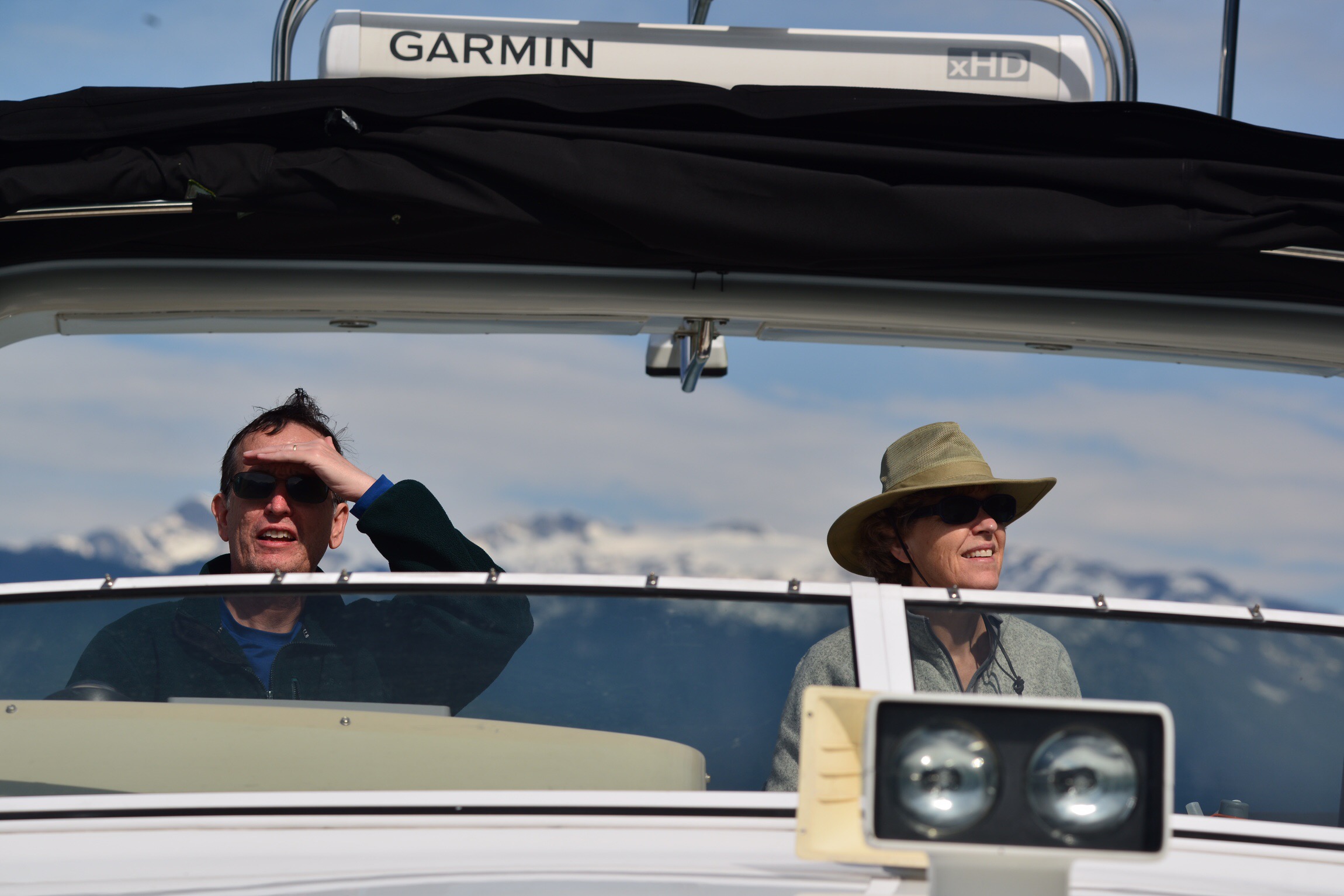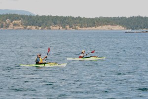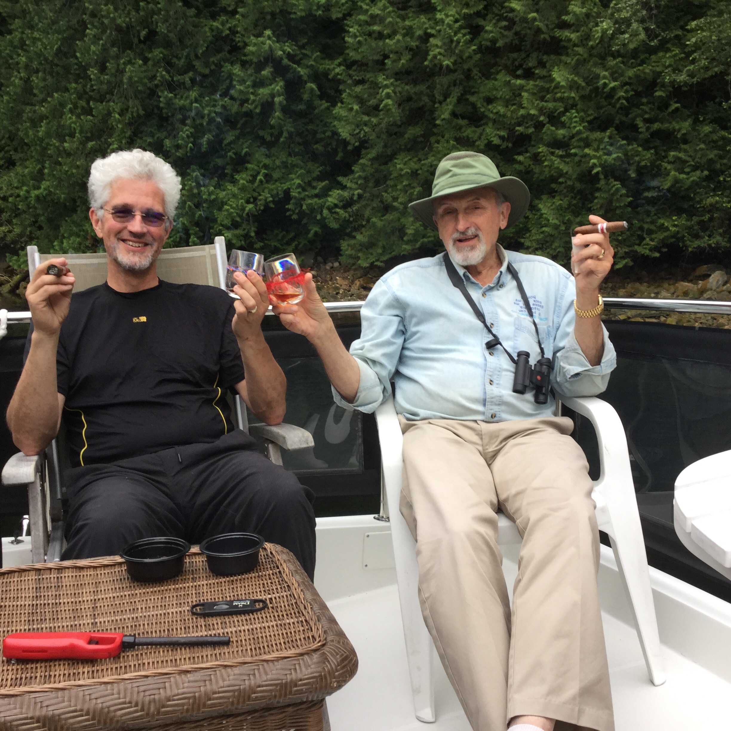 The next morning was a bit windier, but Robert and I went out for a kayak while Jim and Sharon explored using the tender. Our calm time ended shortly after that and the wind really kicked up. Time to leave. The cruise back was less relaxing, but manageable. Robert took the helm for a while doing a great job searching for logs hidden in the waves.