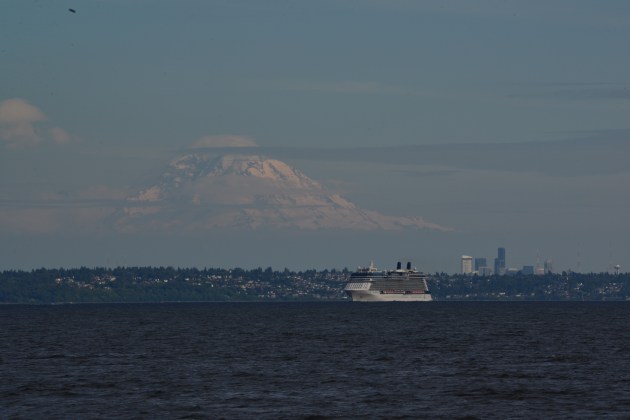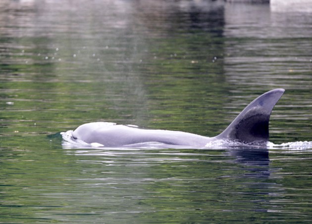 At Ripple Point we didn’t see any orcas so we decided to fish. Within a minute of baiting our lure and dropping it in the water Jim heard the deep exhale of an orca less than 30 feet away. So much for fishing! We grabbed the camera and enjoyed some quality orca time. This orca was a loner and looked like it had an injured fin. I emailed the photos to the local authorities so that they can help if that’s possible. They replied right away, identifying the orca as “T-002C”. He became separated from his family about a month ago and is now traveling with a new pod. The problem with his fin is because he has scoliosis of the spine.