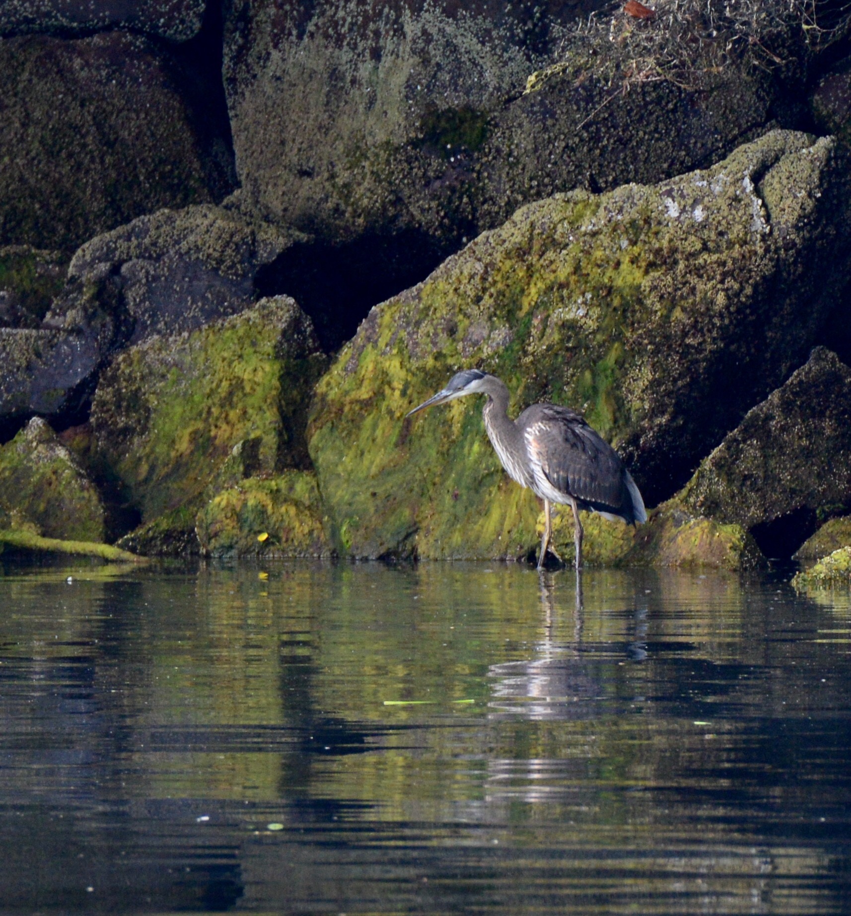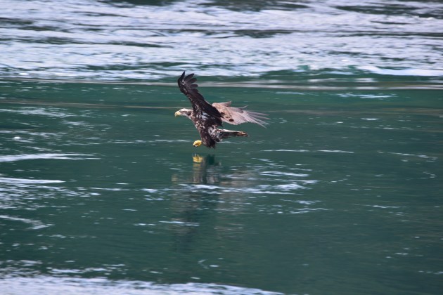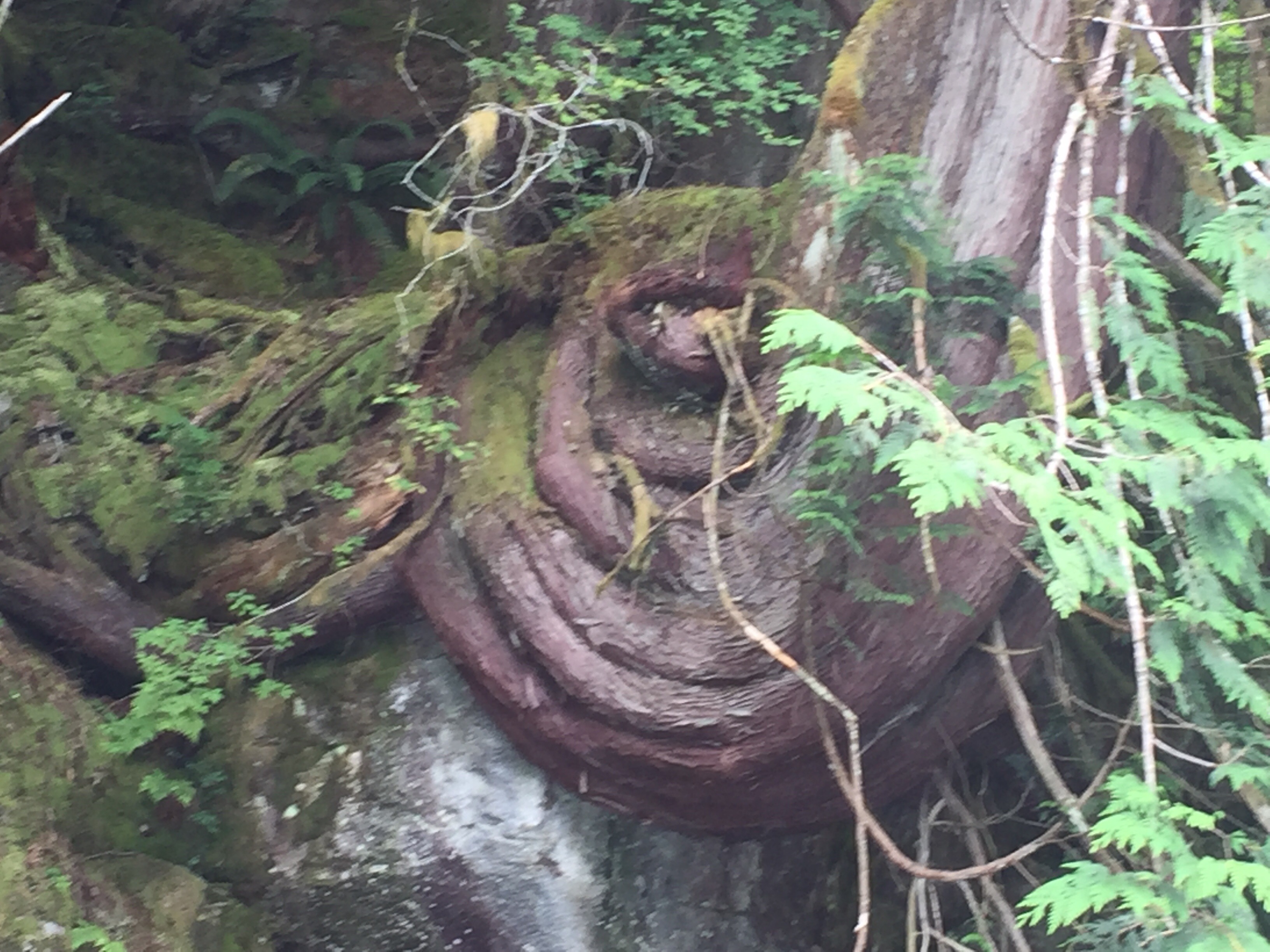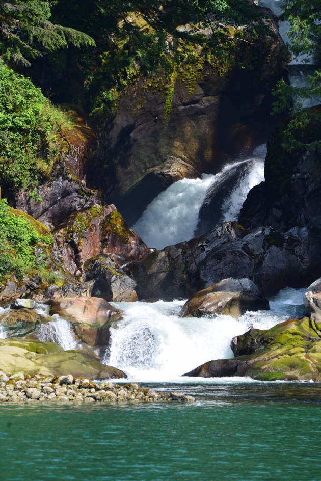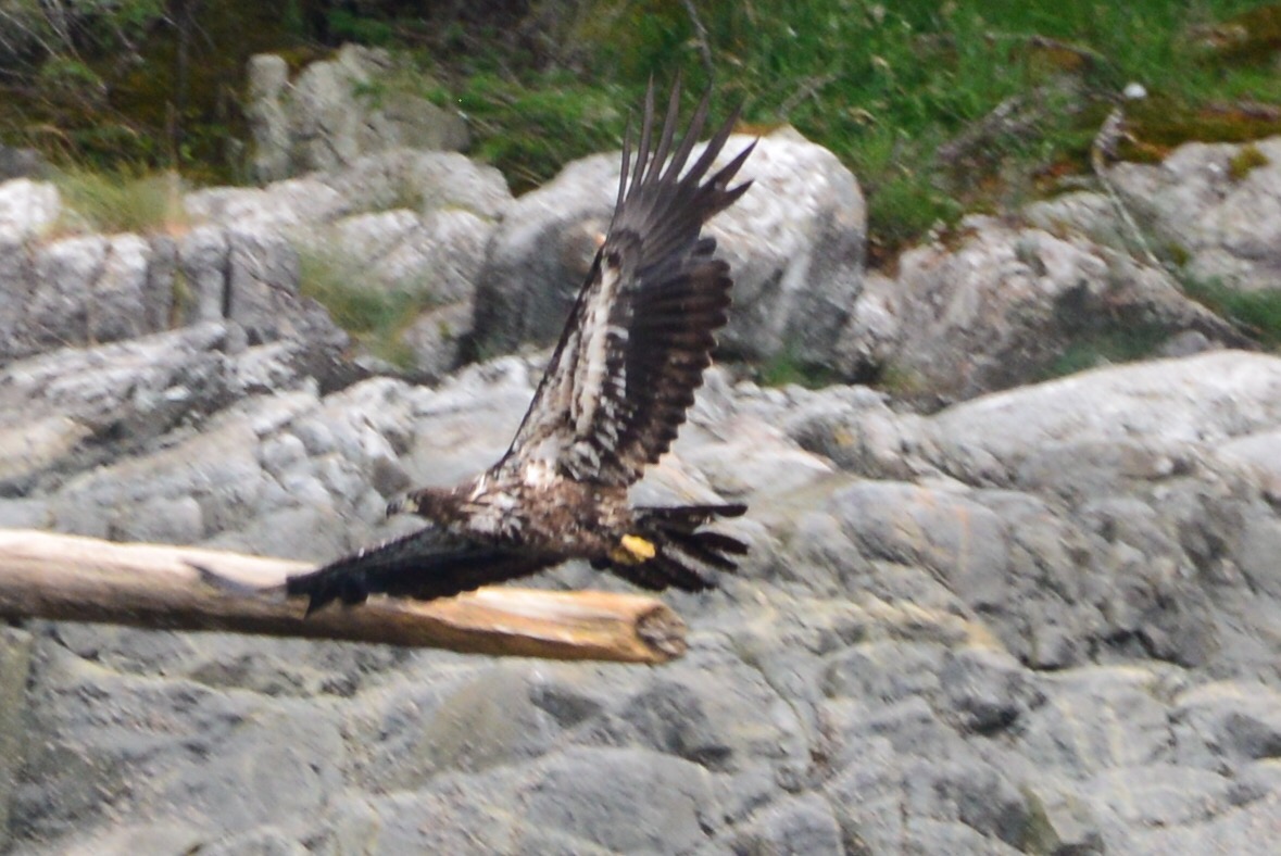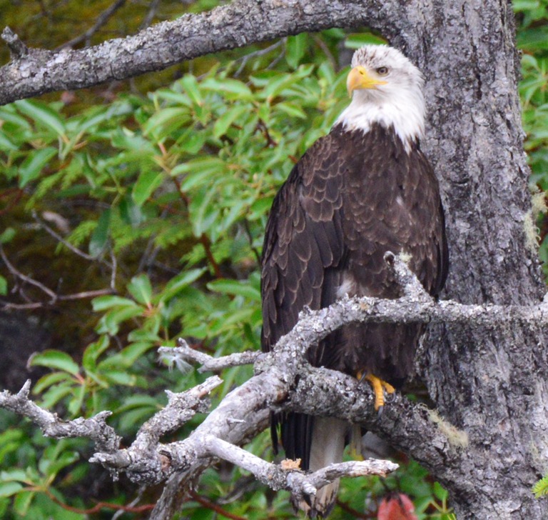 The tidal rapids near Dent Island were very strong as we approached and for a short time we were barely able to make headway through the swirling, churning waters and whirlpools between Big Bay and Jimmy Judd Island (aka Eagle Island). At one point the water had 20 foot elevation changes in the current. Alas, no photos we were all too enthralled.