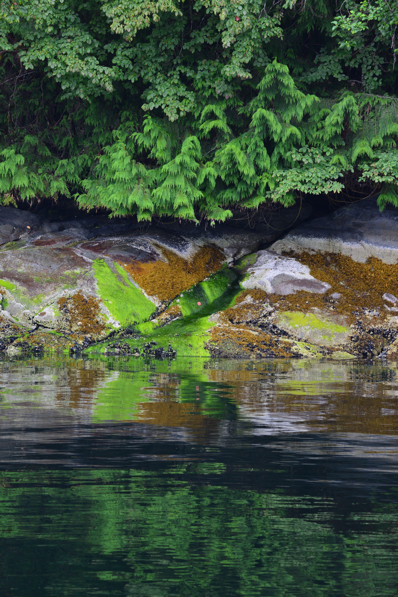 So we left the dock as quickly as we could and headed out to explore the strait in the unusually calm weather. We have traversed Johnstone Strait only twice, because Gale Force winds blow through there almost constantly, and when we do attempt the passage, we have always cruised through as fast as we can without stopping or lingering because the strong winds can return quickly, generate large waves and make your time there very unpleasant. This was a fun change.