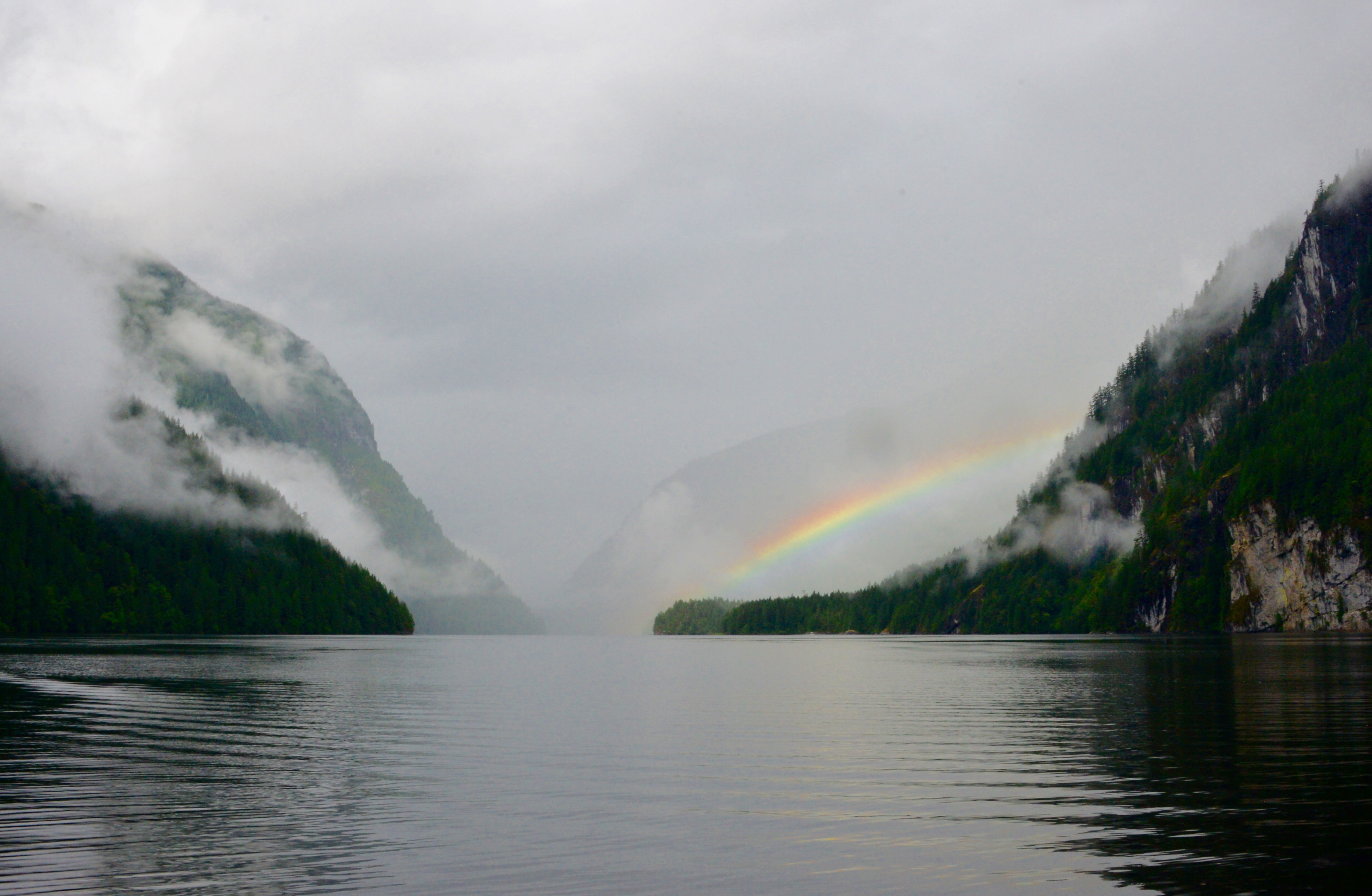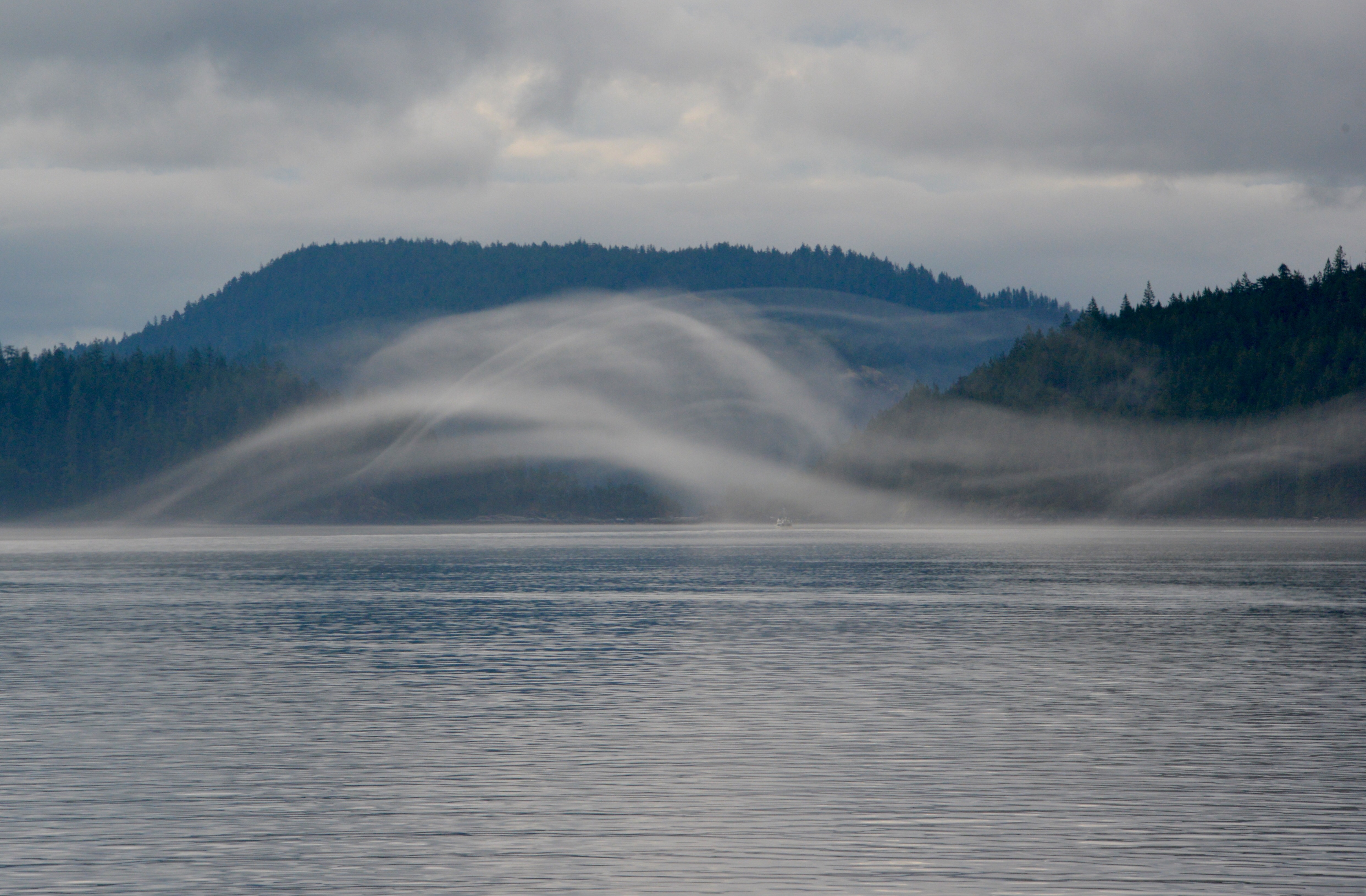 After reprovisioning at the little local grocery store the night before, we woke slowly and were having a hard time motivating to leave, but the Captain checked the latest weather forecast: the next two days were supposed to be calm in Johnstone Strait, the morning fog was clearing and we still had two hours left before the strong tide in Johnstone Strait would turn against us.