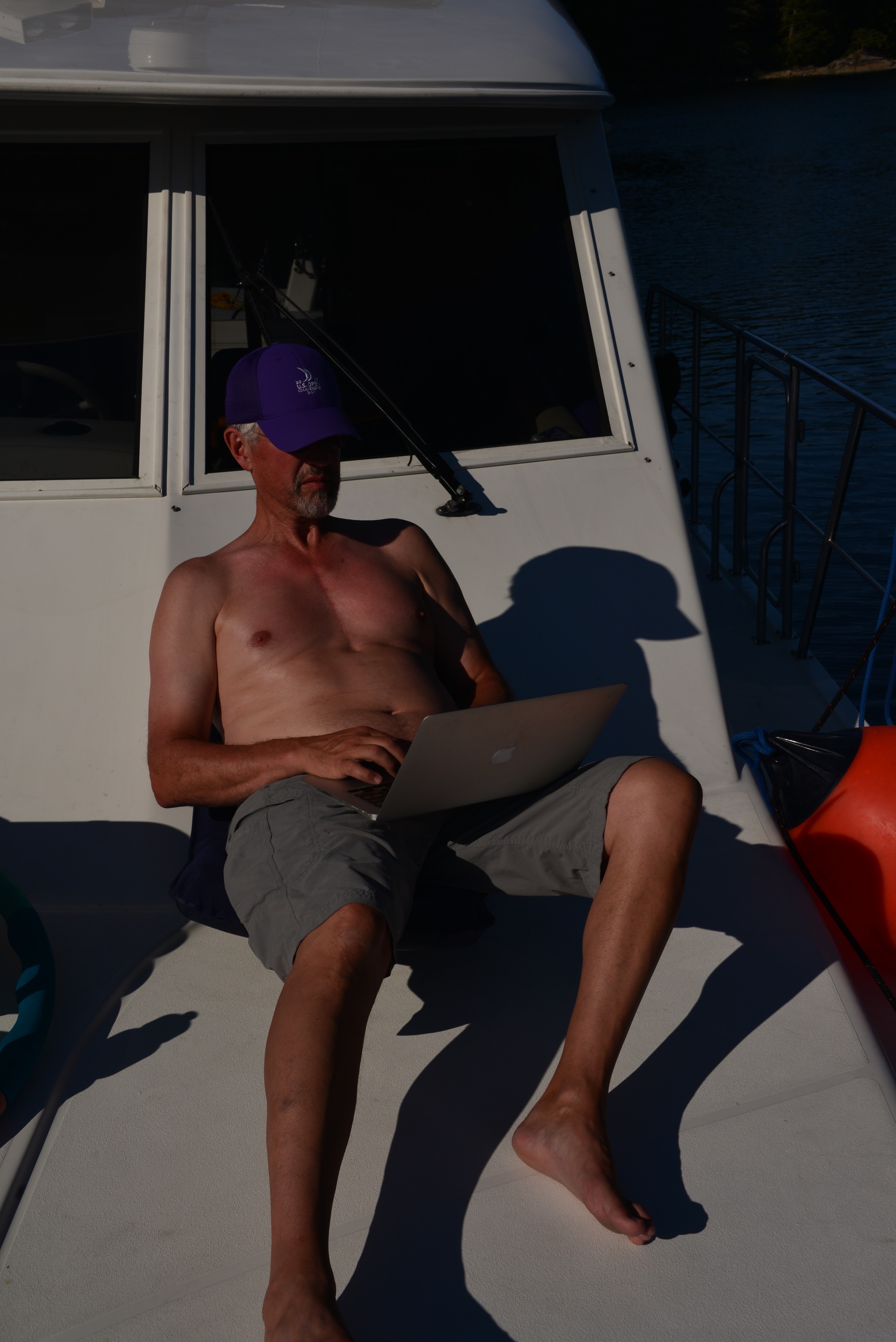 Unfortunately, during our adventures out around the Islands by kayak, board and tender, I lost the bottom fin to my paddle board. Note to self: avoid kelp. I came to a quick stop as it grabbed the fin. I didn’t fall off, but the fin did. Luckily the guys came by in the tender and gave me a ride back to the boat because a paddle board without a fin does not “track” at all so when you paddle, the board goes sideways instead of forward.