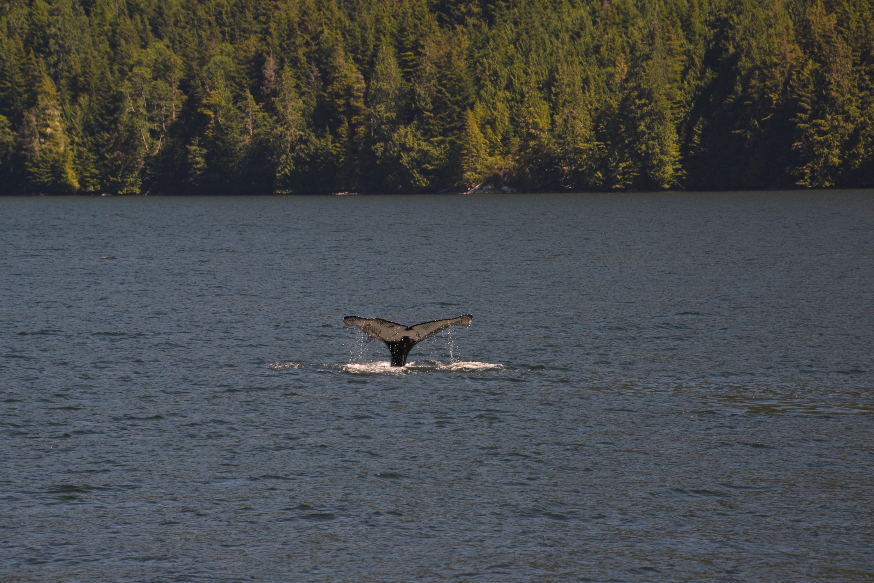 After Octopus Islands we headed through the tidal rapids at Hole in the Wall on our way to our final destination: Okeover Inlet for dinner again at Laughing Oyster. The Captain didn’t quite time the rapids correctly so we had a more thrilling ride through the 7 knot current than we were expecting. No problem though. On our way we encountered another Humpie doing some gentle cleaning. What fun!