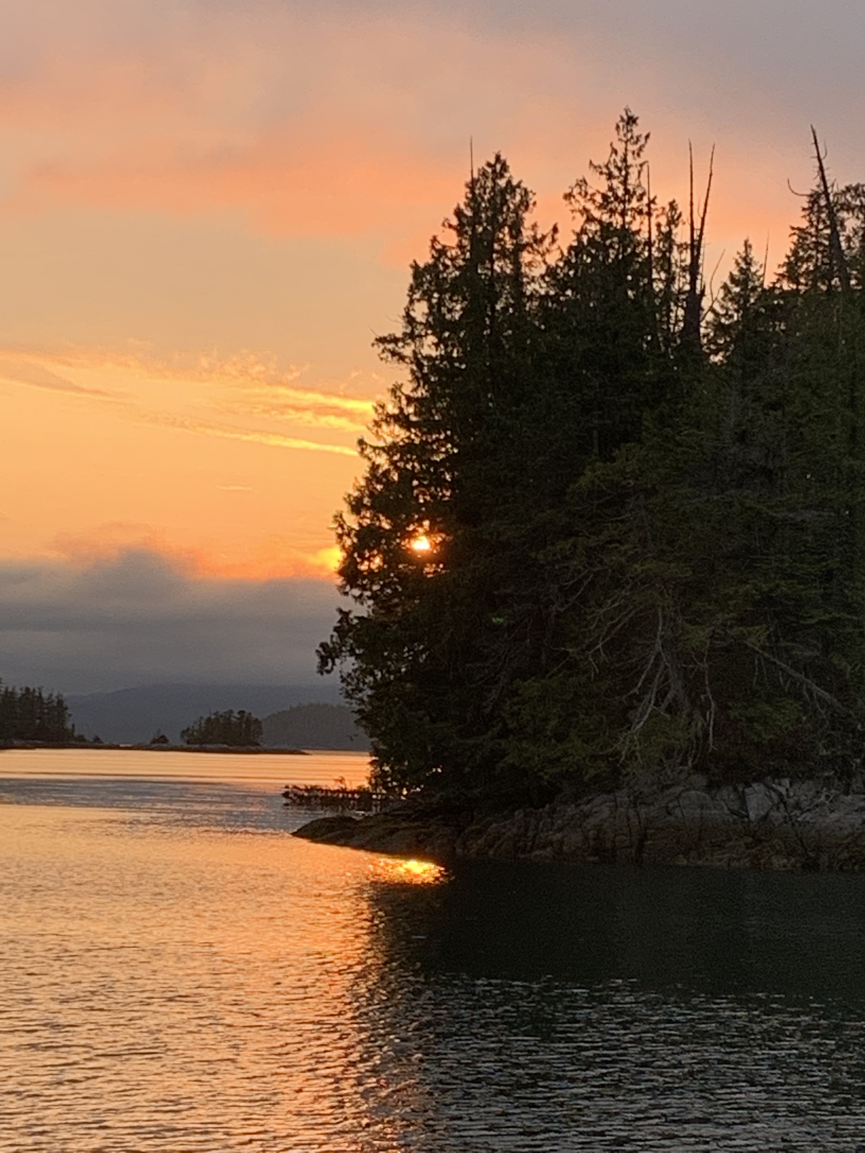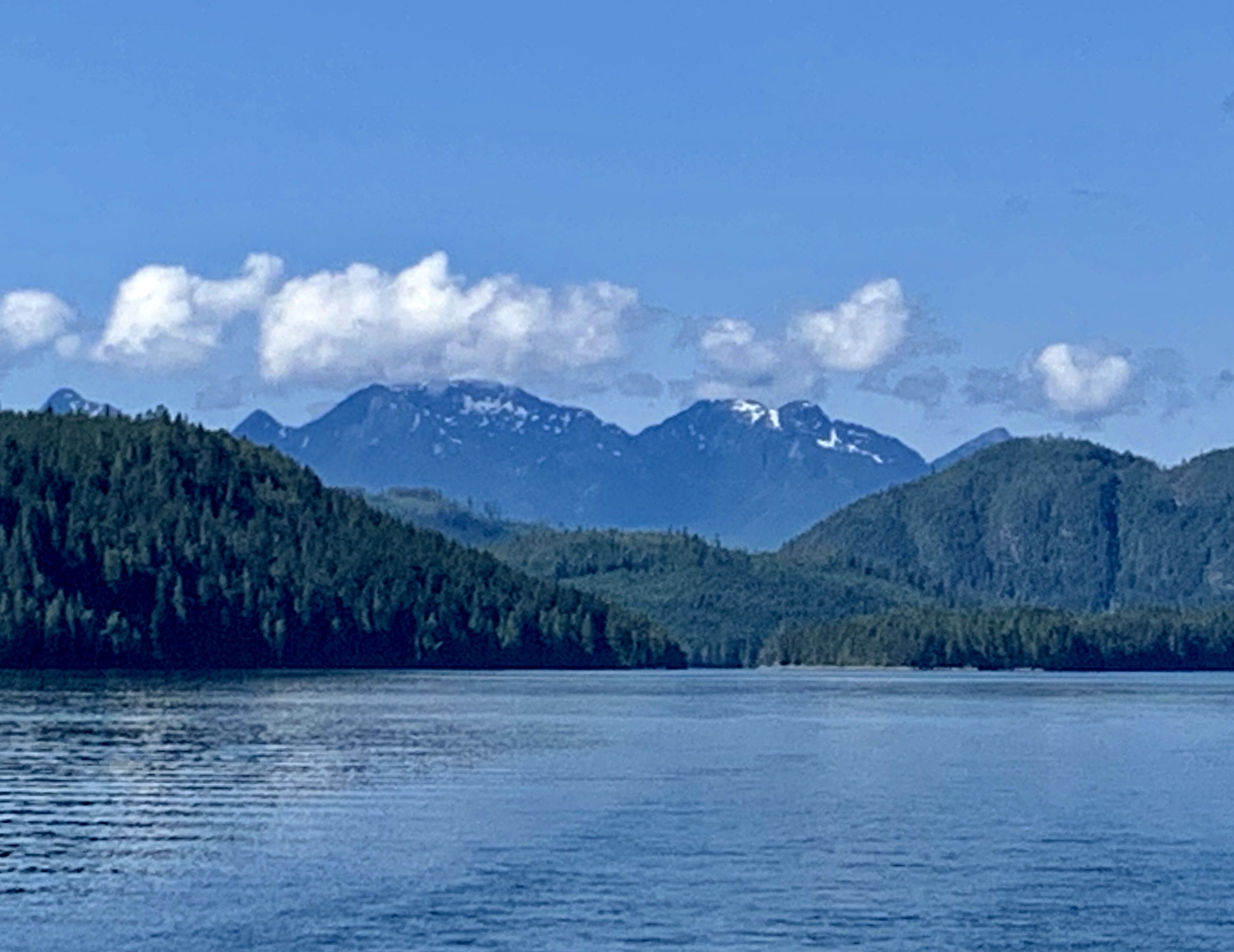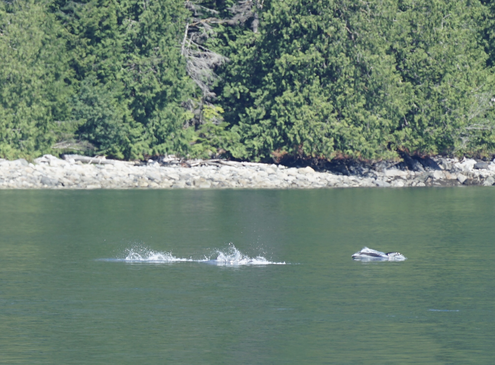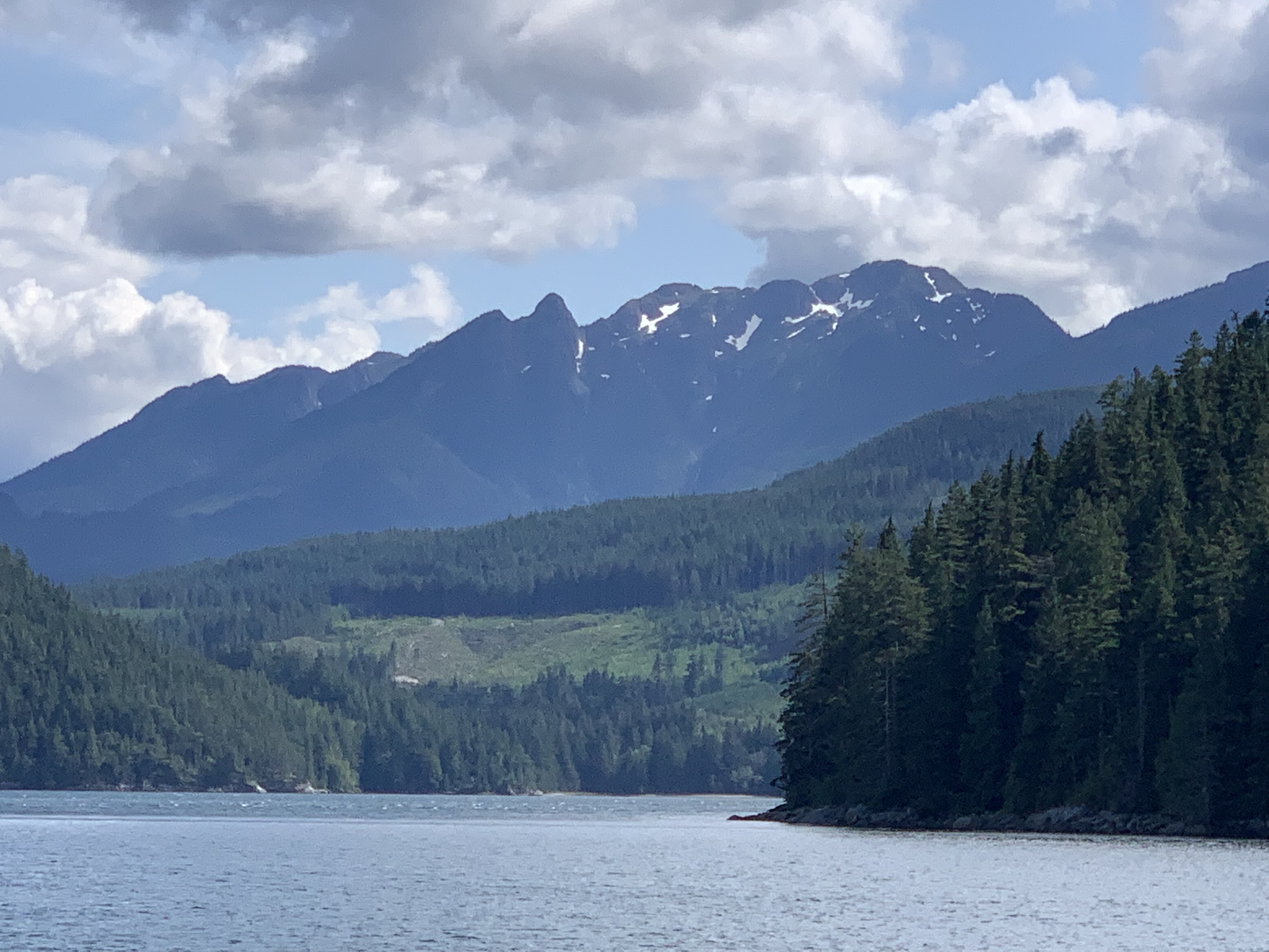 I write this about an hour south of Port Hardy. We hit the weather jackpot with calm seas, no wind and clearing skies. It’s sunny now although there are several thunder clouds in the distant mountains.