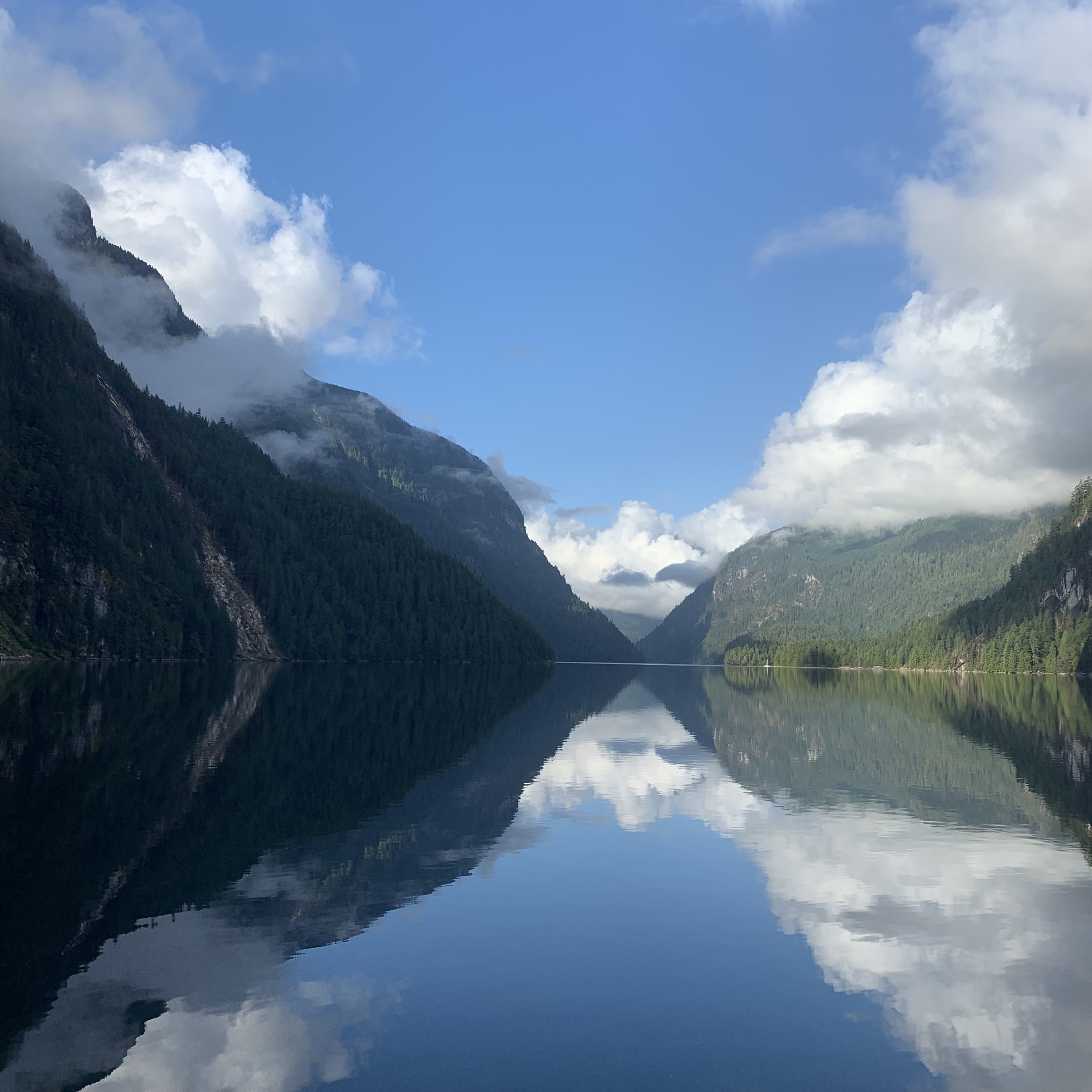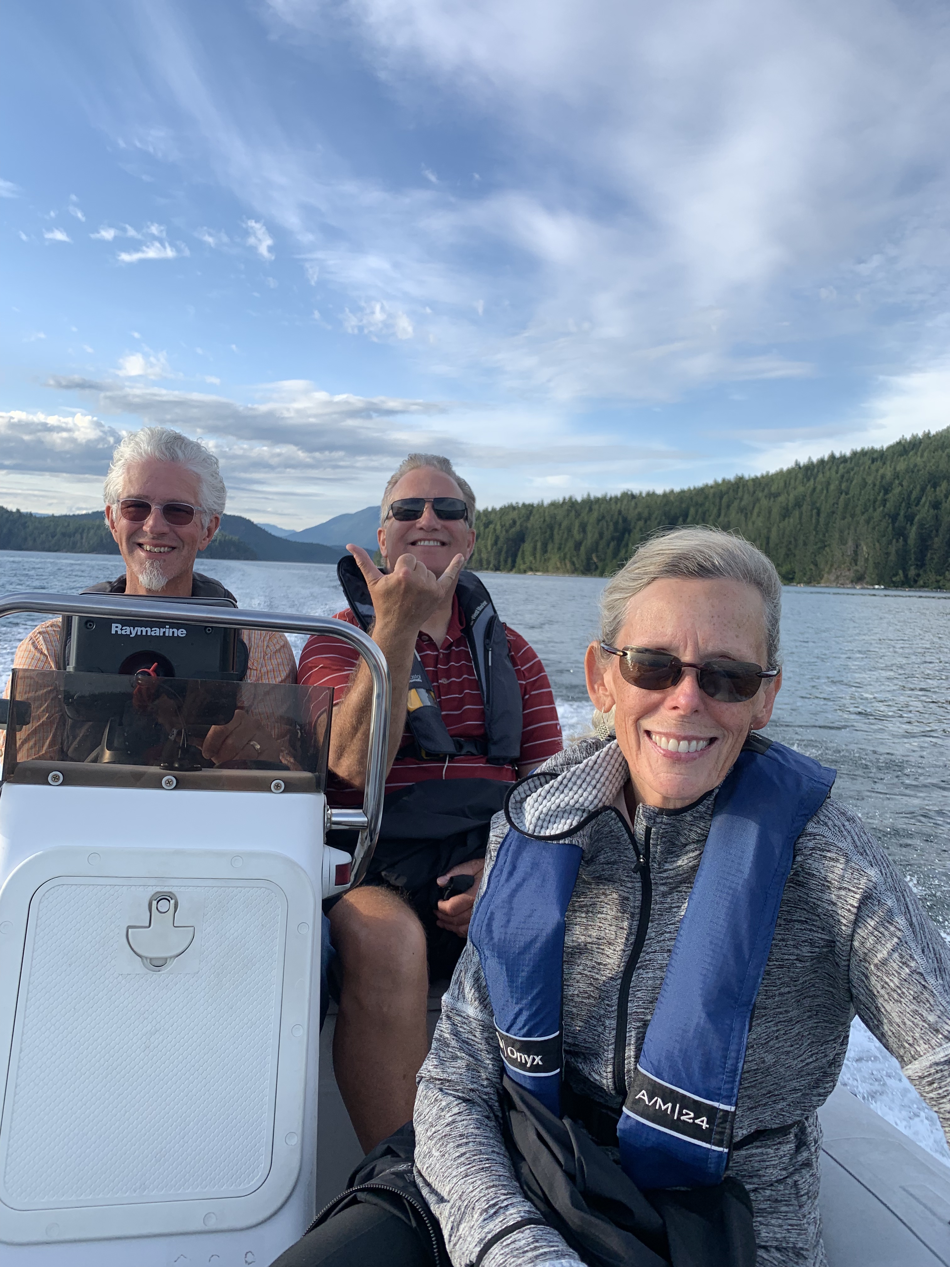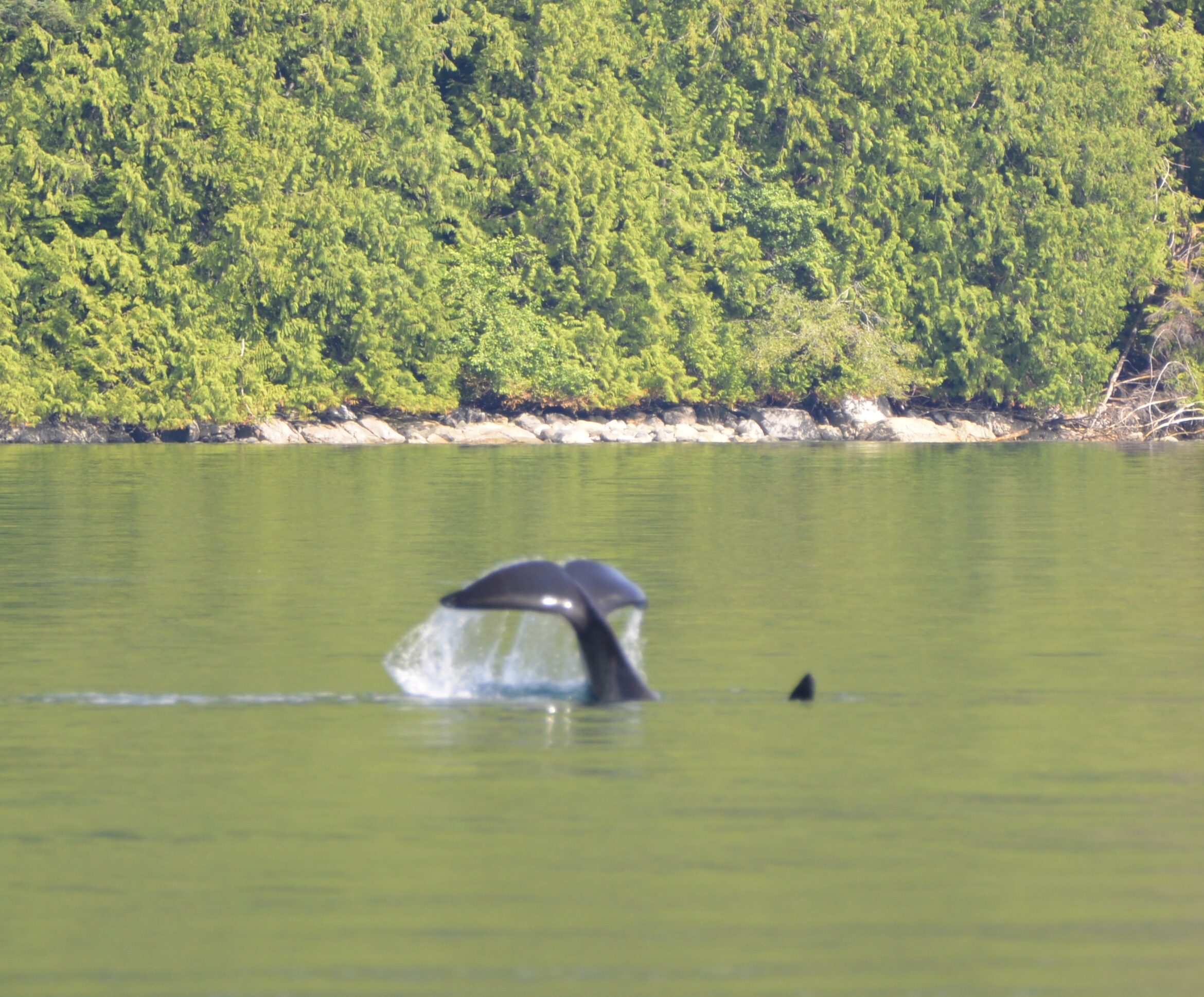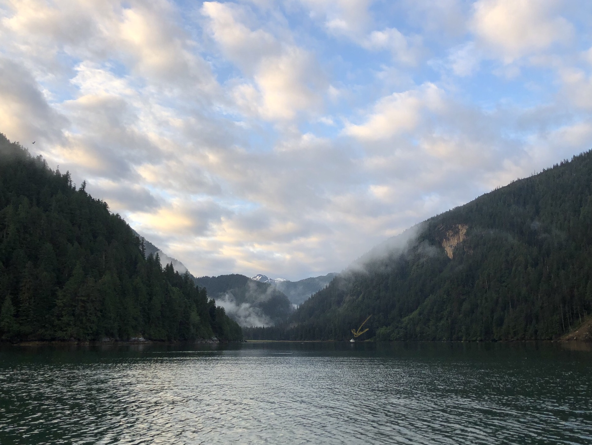 I write this about an hour south of Port Hardy. We hit the weather jackpot with calm seas, no wind and clearing skies. It’s sunny now although there are several thunder clouds in the distant mountains.