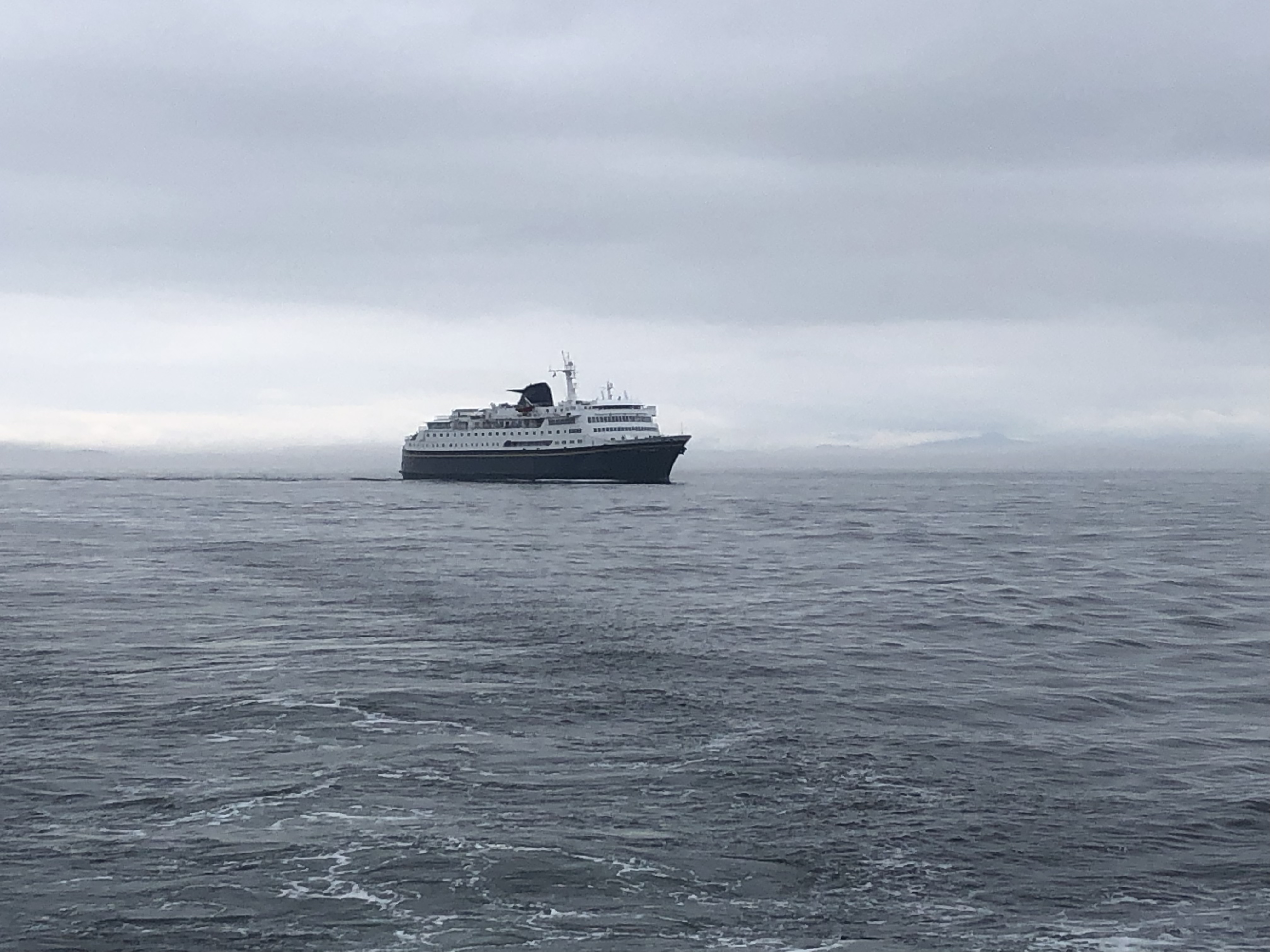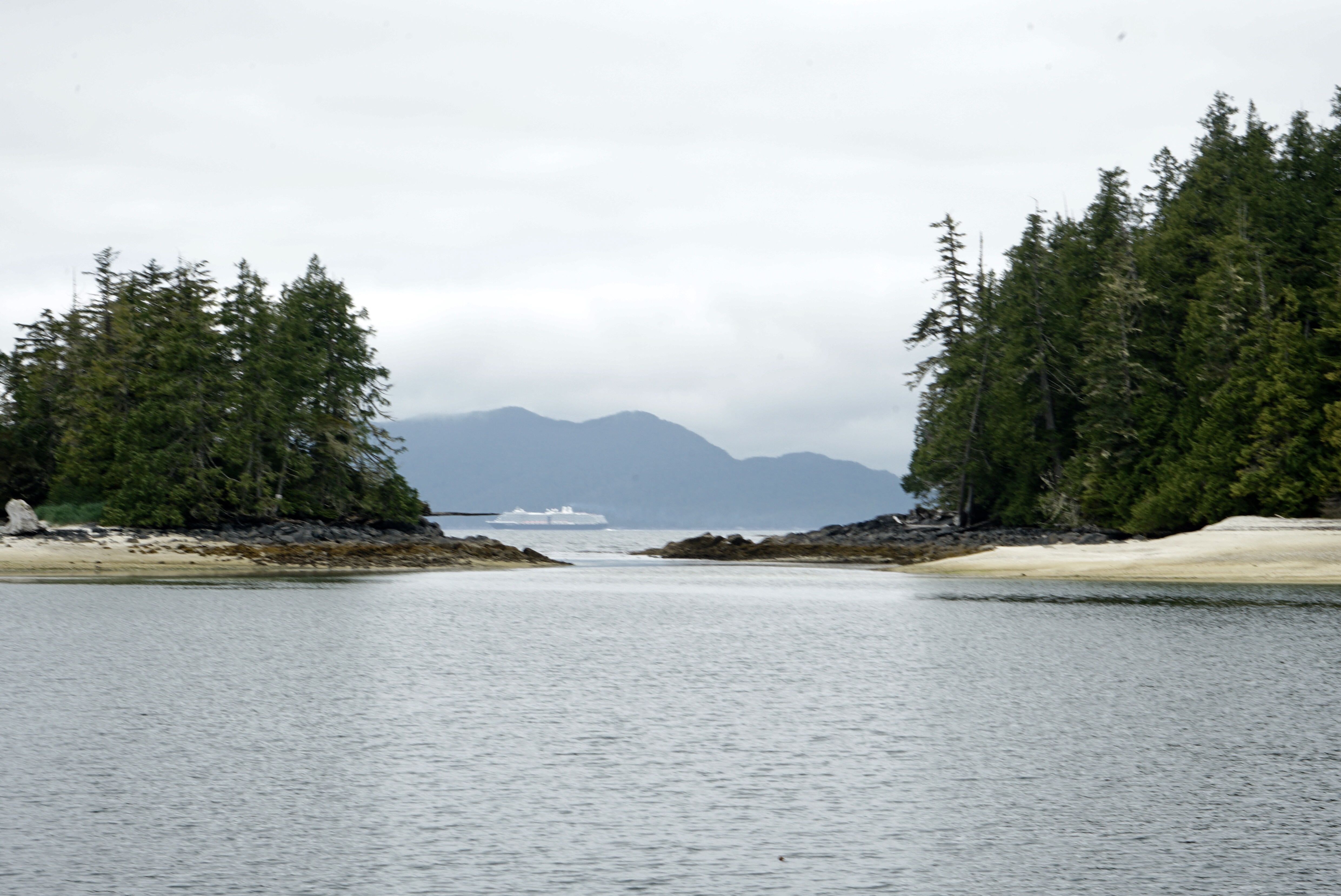 We passed Cape Caution at almost the exact same time as the Columbia, the big open ocean ferry boat that regularly travels from Bellingham to Alaska and back. Jim took it with his family when he was a kid. It’s almost as big as a cruise ship.