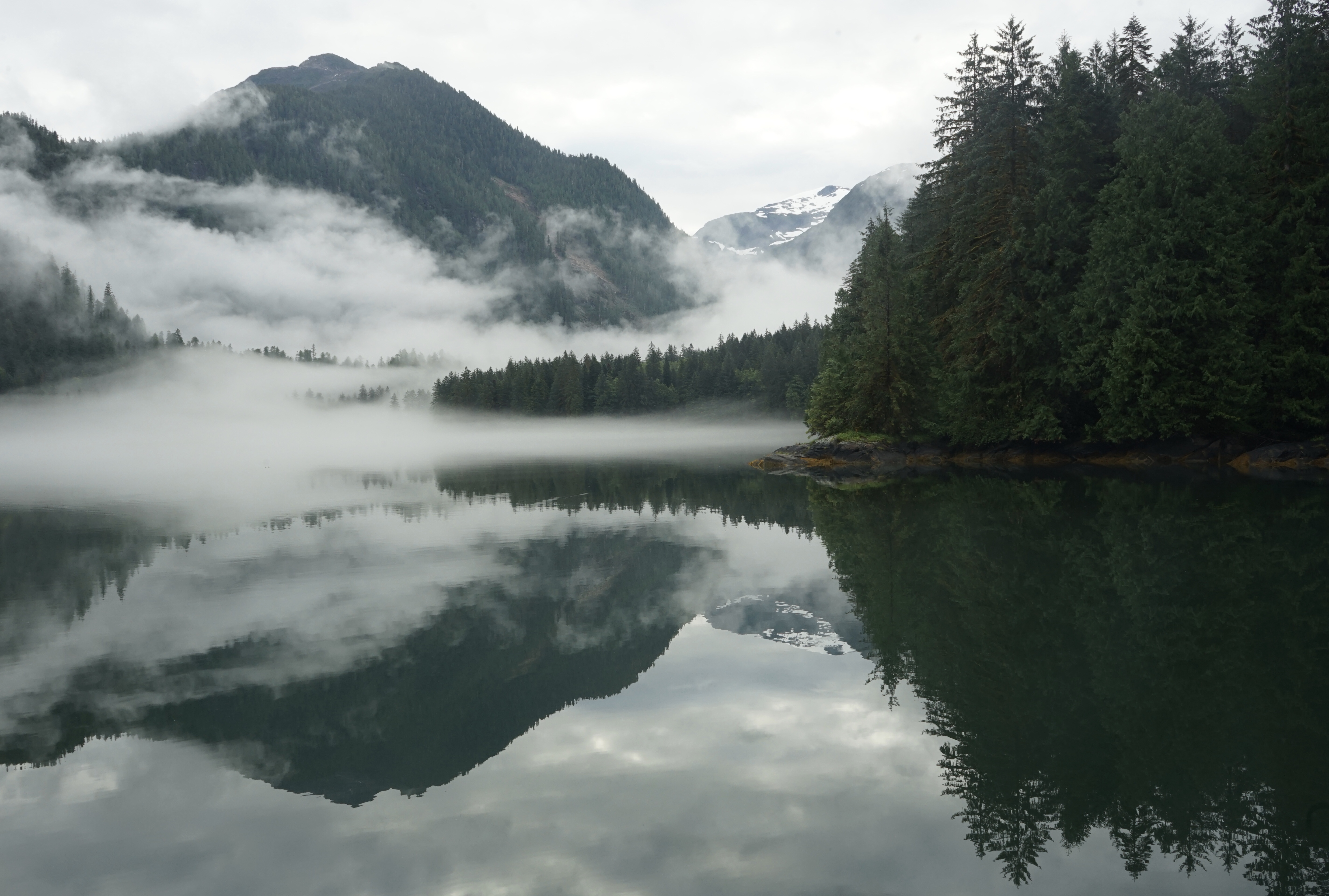 The fog lifted while we went out for along kayak around all the little nooks and crannies. The calls eagles and other birds are the high notes to the peaceful sounds of the breeze and the water lapping around us.