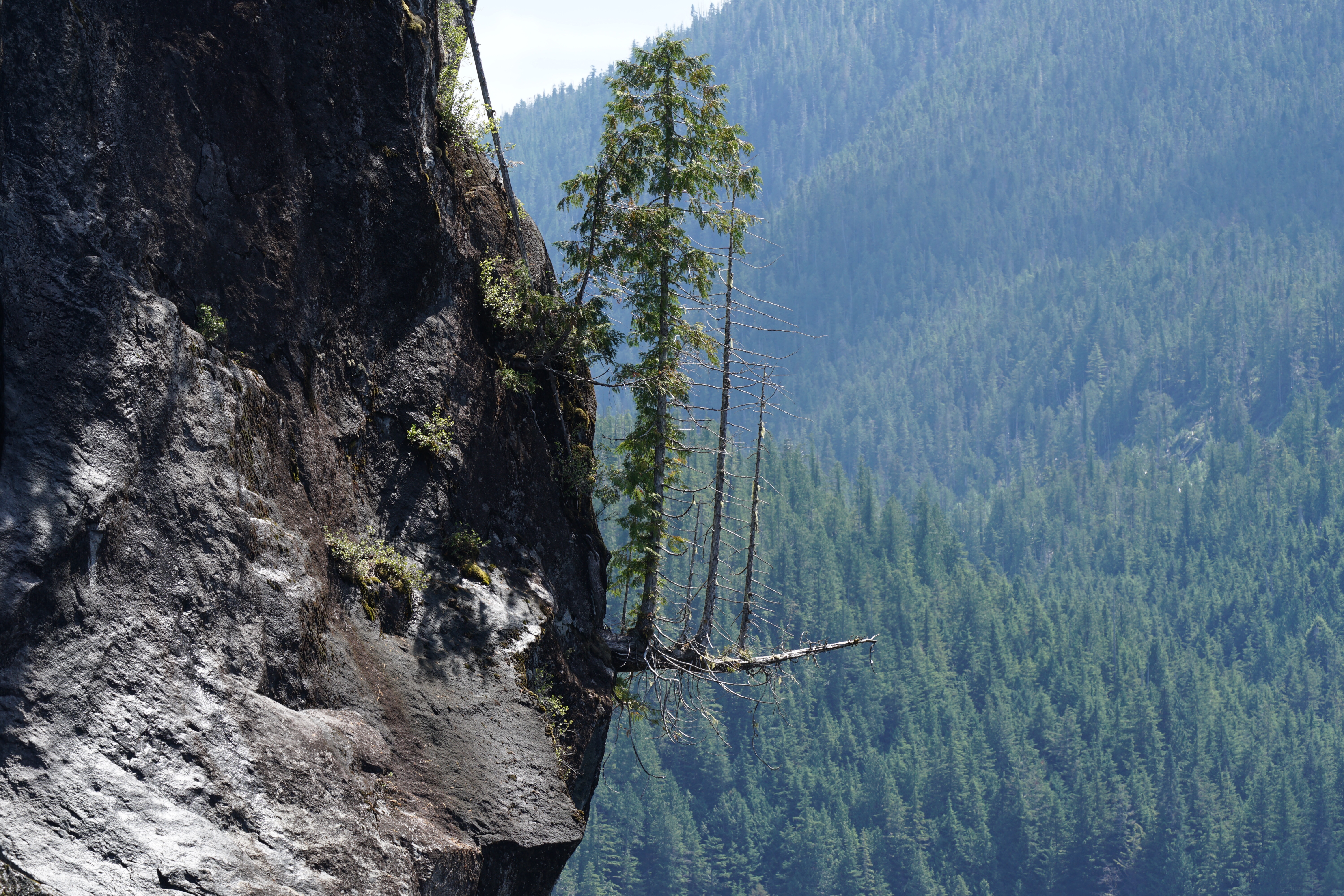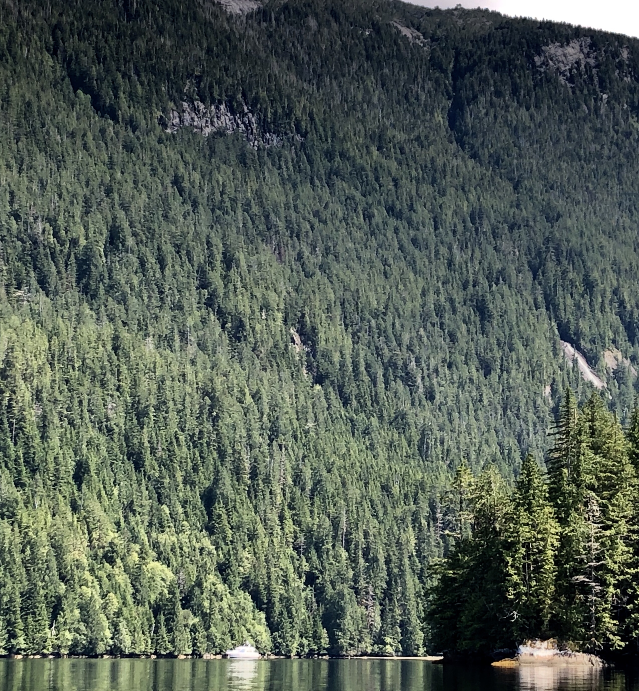 2. The forest is different here, the best way to describe it is messy. Trees grow in all shapes and sizes and at all angels, but there aren’t many large old trees. There are lots of silver-colored dead trees in the forest that covers everything you can see. We are not sure if the silver-colored dead trees come from past fires or if they are the usual ways older trees transition here.