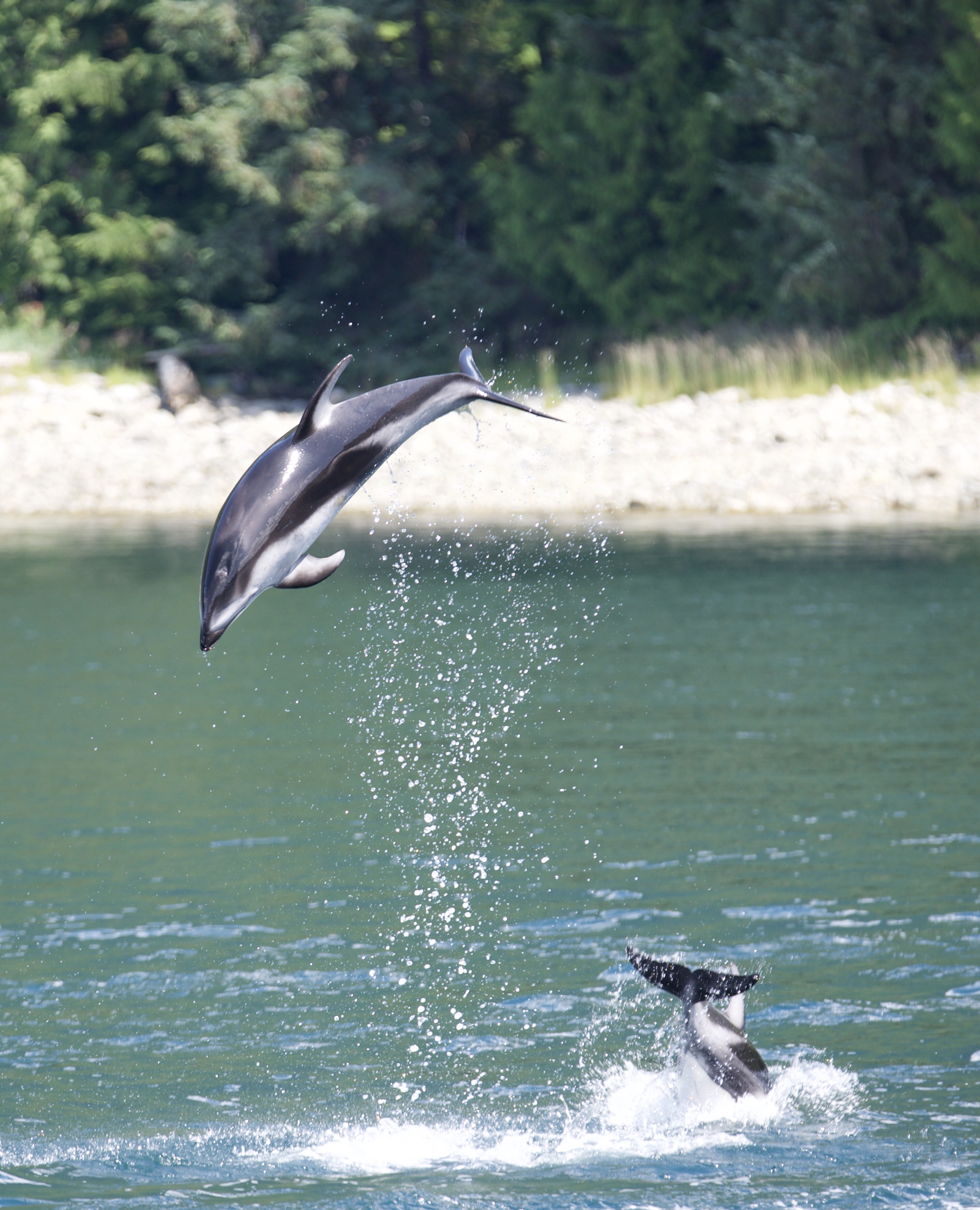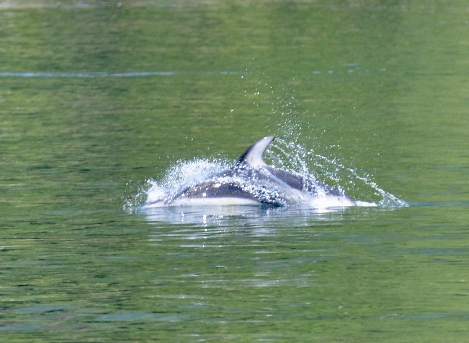 We passed some more dolphins fishing and pulled out our Whales and Dolphin book because they looked a little different than our last encounter. But it turns out they were both “Pacific White-Sided Dolphins”. Maybe we will also spot some Dall’s Porpoise or Northern Right Whale Dolphins on our trip. We hope so.