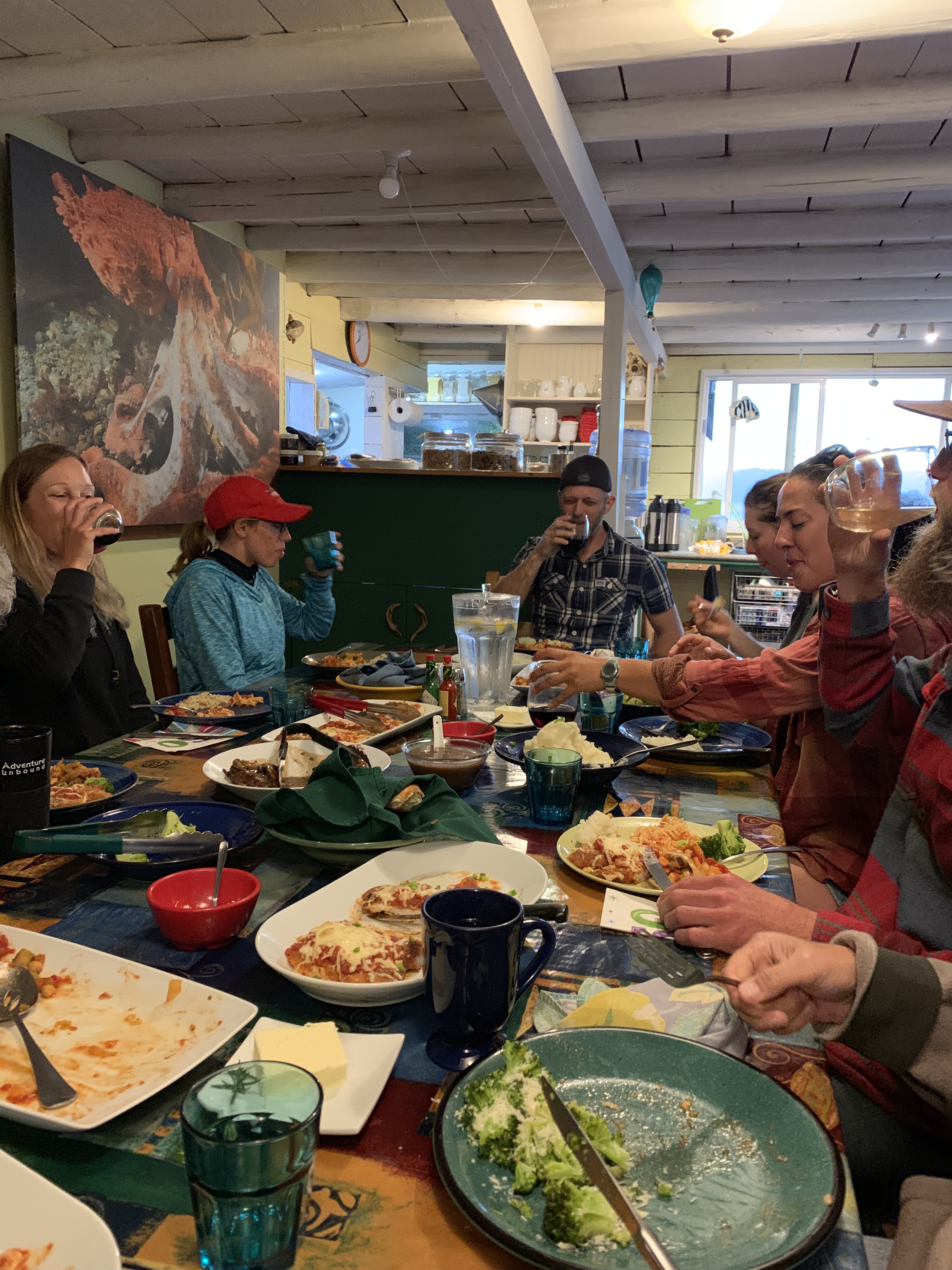 At dinner he described his new experience as buying a “boat on land” as well as 3 other boats. It definitely is a “project” and we wish him and his partner the best of luck. Dinner was a feast and we enjoyed the company of the kayak group. One family was from Cleveland and another group was from Alaska.